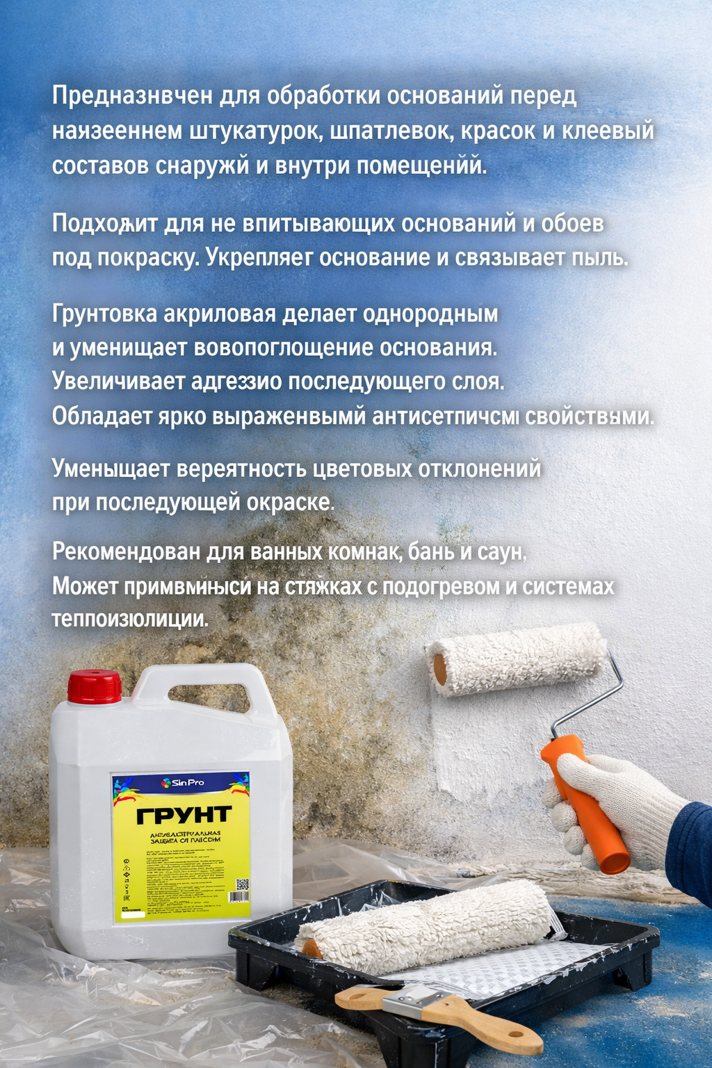 | Тип грунтовки | антиплесень; под обои; от плесени |